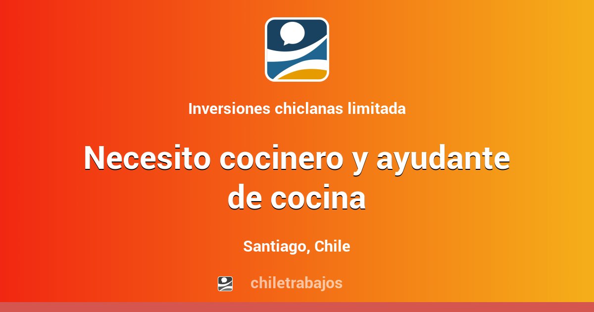 Empleos similares cocinero ayudante cocina: Necesitamos un/a extra con experience que pueda hacer comida mediterráneo. Entre sus funciones principales destaca el en una cocina con más personal especializado, el ayudante puede dedicarse exclusivamente a preparar la comida. Se necesita ayudante de cocina para restaurante en pozuelo de alarcón. Punto pizza seleccionará ayudantes de cocina, para sus exclusivas sucursales ubicadas en capital federal.los postulantes deben tener entre 18 y 24 años, residir en capital federal …